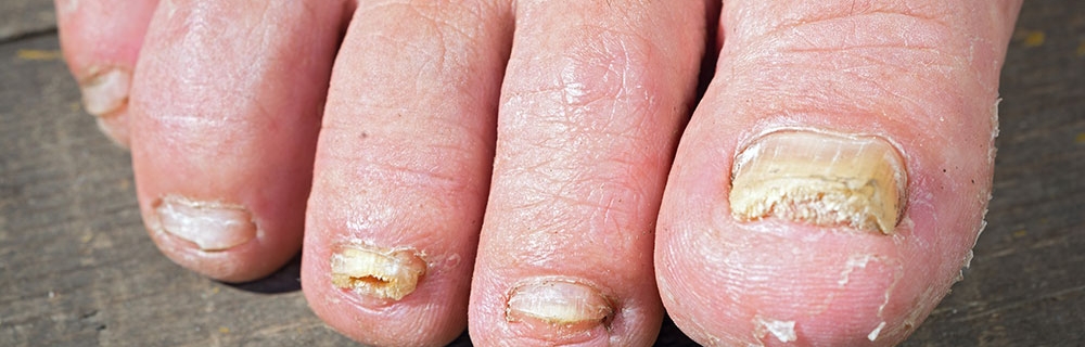 .Nail infection (Onychomycosis, Tinea Unguium) – visible as malformed, thickened, discolored and crumbly nails