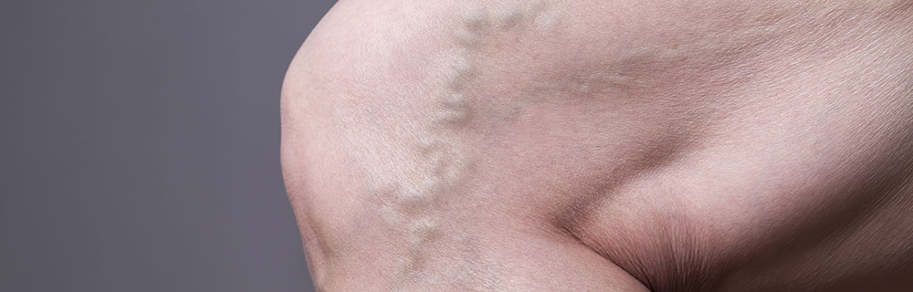 Dilated, unsightly leg veins are a common problem. The three most common types of abnormal veins are spider veins, reticular veins and varicose veins – and these are often seen in combination. Spider veins sit close to the surface of the skin, they are usually red or blue in colour and present as fine, jagged lines. Spider veins are fed by larger reticular veins that sit further under the skin. Varicose Veins are the largest of the three. Red, blue or flesh coloured they look like twisted cords, and are usually found running down the legs; they are caused most often by a weakness in the vein wall.